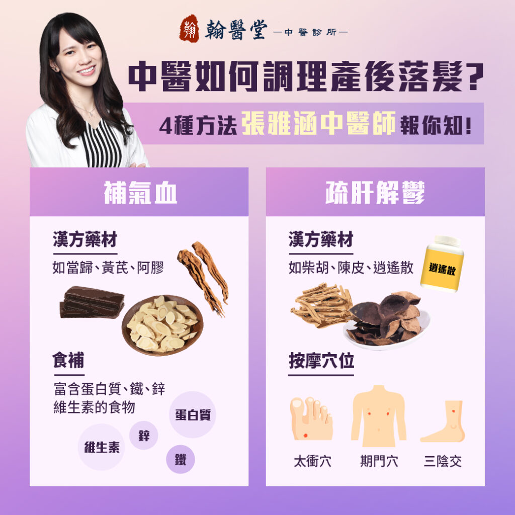 張雅涵中醫師帶你了解4種中醫調理產後落髮方法。(圖片來源:翰醫堂中醫診所)