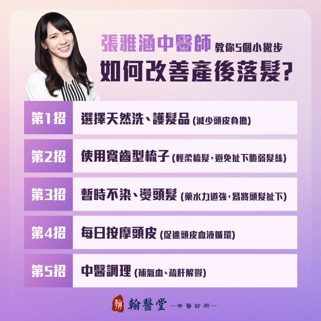 張雅涵中醫師教你5招改善產後落髮的小撇步。(圖片來源:翰醫堂中醫診所)