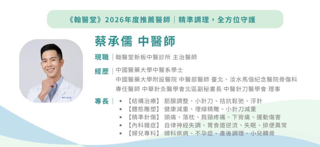 中醫師推薦:新北板橋翰醫堂新板中醫診所-蔡承儒中醫師
