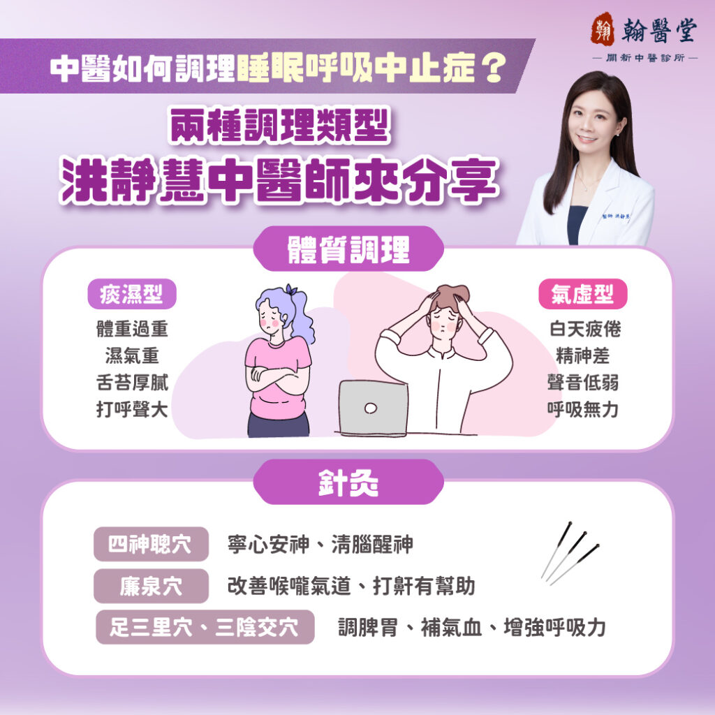 洪靜慧中醫師提醒,以下兩種體質的人較容易出現睡眠呼吸中止症,透過體質調理與針灸輔助,可以幫助改善呼吸品質與睡眠狀況。